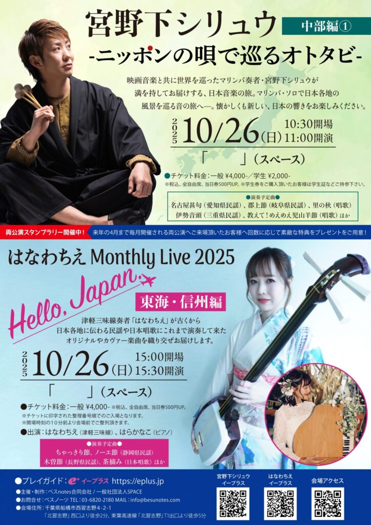 映画音楽と共に世界を巡ったマリンバ奏者・宮野下シリュウが満を持してお届けする、日本音楽の旅。マリンバ・ソロで日本各地の風景を巡る音の旅へ—。懐かしくも新しい、日本の響きをお楽しみください。